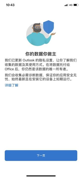 登陆帐户后,Microsoft 365版outlook会进行一系列数据隐私等提示,单击下一页完成阅读即可。