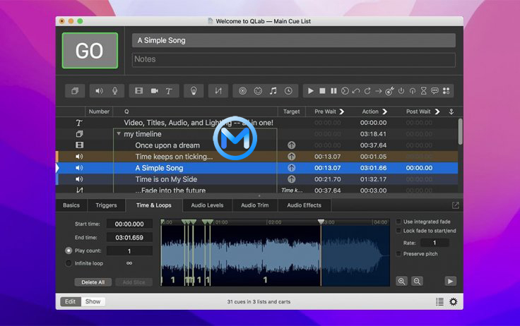 QLab Pro Mac版是一款非常实用的音视频播放软件,软件功能强大,提供了强大的实时音视频控制能力,支持WAV、MP3、MP2、MPEG、OGG等格式的文件,能够精准地同步和触发音频、视频、灯光和其他多媒体内容。拥有舞台演出、剧院、演讲会、广播、电影制作等领域,支持多轨道操作,可以轻松处理复杂的音视频场景,感兴趣的赶快下载使用吧!
